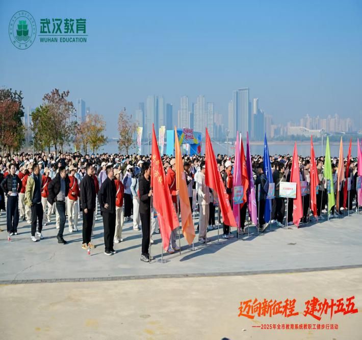 11月21日上午,以“迈向新征程,建功‘十五五’”为主题的2025年全市教育系统教职工健步行活动在洪山江滩举行。来自各区教育局、市属高校和局直属单位的1000余名教职工以昂扬的姿态、坚实的脚步,共同迈向“十五五”新征程。