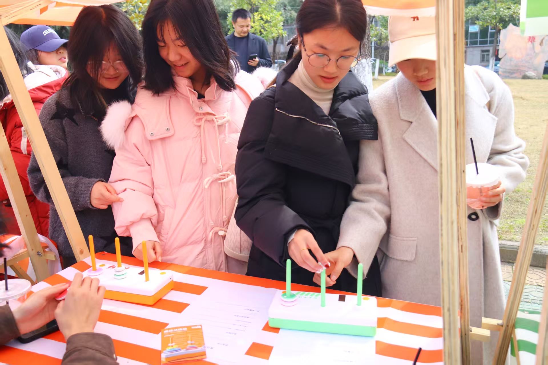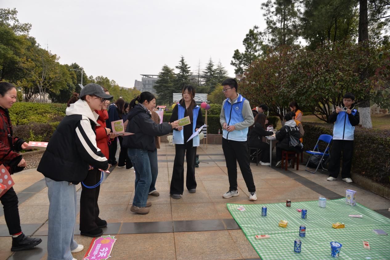在精心布置的主题背景墙前,师生们纷纷驻足留影,为本次游园活动拉开了温馨序幕。参与者凭“体验之旅”集章卡自由穿梭于各学院摊位之间,每完成一项体验,便可获得一枚专属印章,集齐8枚印章还可兑换节日礼物。