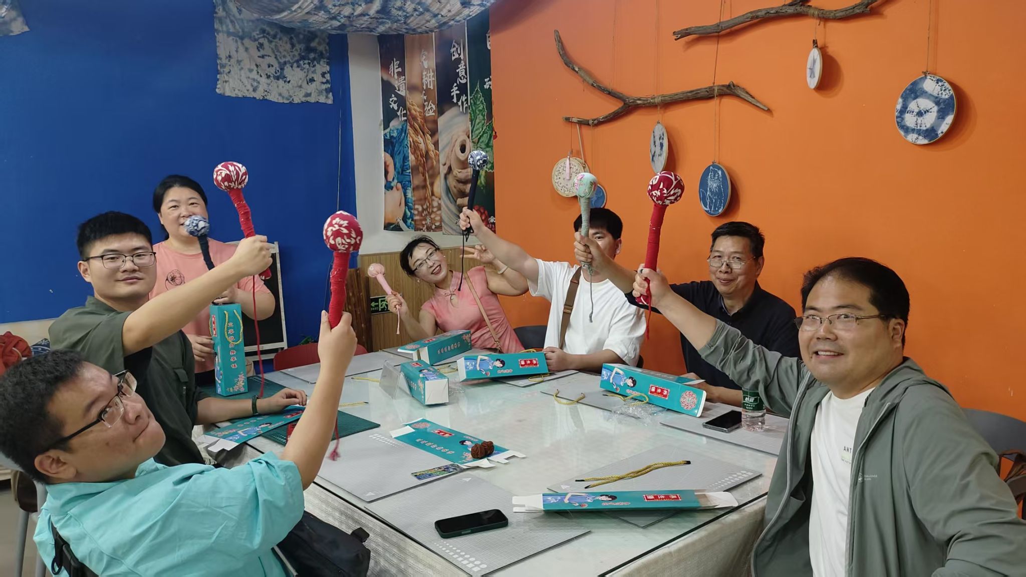 打卡完几个游乐项目,来到手工区域进行非遗体验,老师们根据自己的喜好选择非遗螺钿、艾草锤、民族特色扎染等手工项目,大家在放松的同时,也体验到了非遗手工项目的魅力。