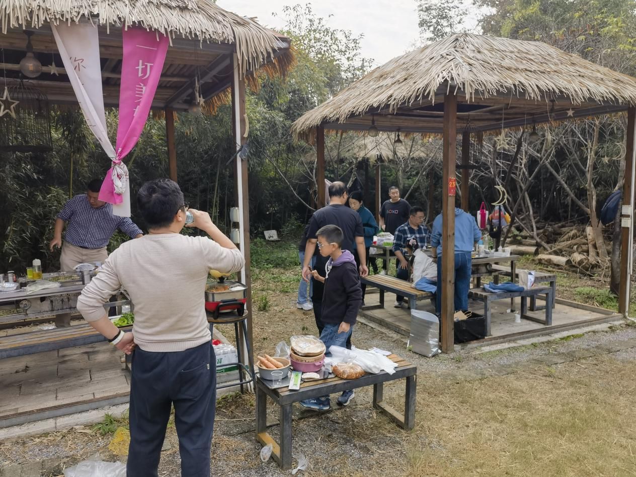 12:00,地道的农家桌餐准时开席。新鲜时令蔬菜、香浓土鸡汤、自制农家腊味等佳肴摆满餐桌,大家围坐一堂,分享着上午的游玩趣事,在味蕾的满足中进一步拉近彼此距离。午后的自由活动时间,大家或与庄园萌宠亲密互动,或漫步花卉欣赏区拍照打卡,或在葡萄长廊中畅谈生活,尽情享受难得的休闲时光。16:00,自助烧烤盛宴拉开帷幕,五花肉、羊肉串、秋刀鱼等数十种食材不限量供应,搭配冰镇啤酒与饮料,大家分工协作、动手烤制,在烟火气中畅谈工作与生活,氛围温馨而热烈。